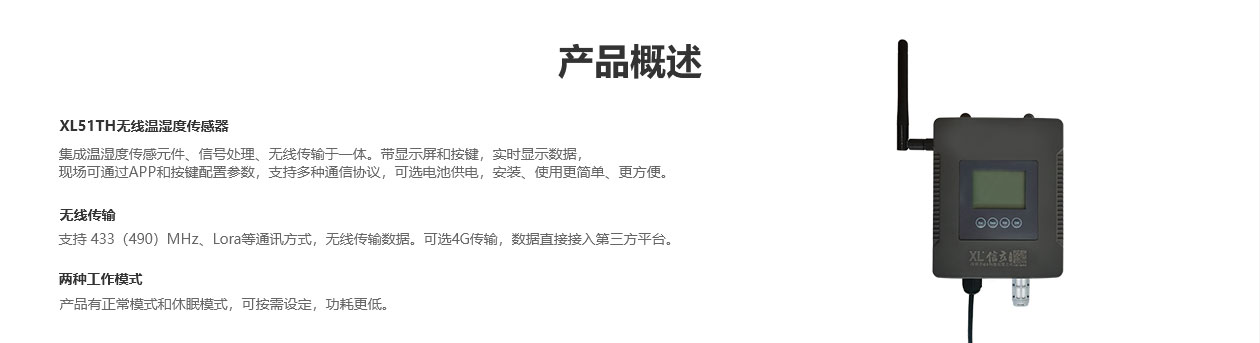 XL51TH无线温湿度传感器,集成温湿度传感元件、信号处理、无线传输于一体。带显示屏和按键,实时显示数据,现场可通过APP和按键配置参数,支持多种通信协议,可选电池供电,安装、使用更简单、更方便。