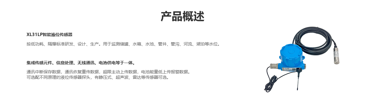 XL31LP智能液位传感器,是按低功耗、隔爆标准研发、设计、生产。用于监测,储罐,水箱、水池,管井、管沟,河流、湖泊,等水位。