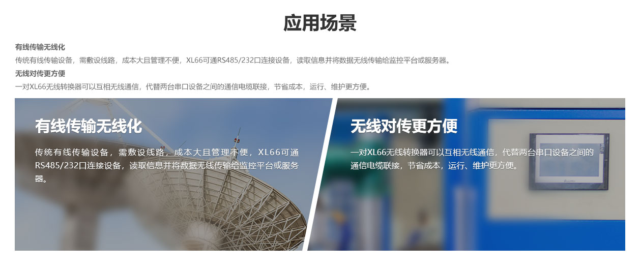 3、较远距离的串口通信,特别敷设电缆、光纤不便,施工成本高的场景,选择XL6666串口无线转换模块,省成本、工期短,运行、维护也更简单方便。