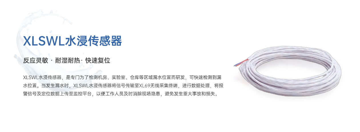 XLSWL水浸传感器,是专门为了检测机房、实验室、仓库等区域漏水位置而研发,可快速检测到漏水位置。当发生漏水时,XLSWL水浸传感器将信号传输至XL69无线采集终端,进行数据处理,将报警信号及定位数据上传至监控平台,以便工作人员及时消除现场隐患,避免发生重大事故和损失。