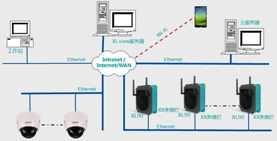 智慧养殖环境监控系统基于传统服务器或云服务器平台和XL.SN智能传感网络技术(Lora、433M、4G、NB-IOT等),采用物联网关、智能环境监测终端、无线采集装置、智能传感器等,实现对空气温湿度、光照度、CO₂浓度、硫化氢、氨气、溶氧量、PH值、水温、铵氮等养殖场环境参数的实时采集、无线传输、监测和控制。
