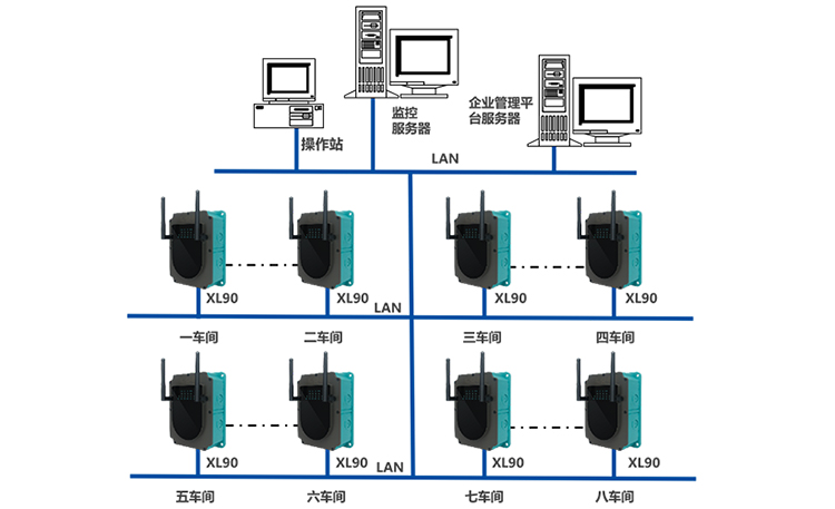 通信网络由XL90物联网关及企业LAN构成;