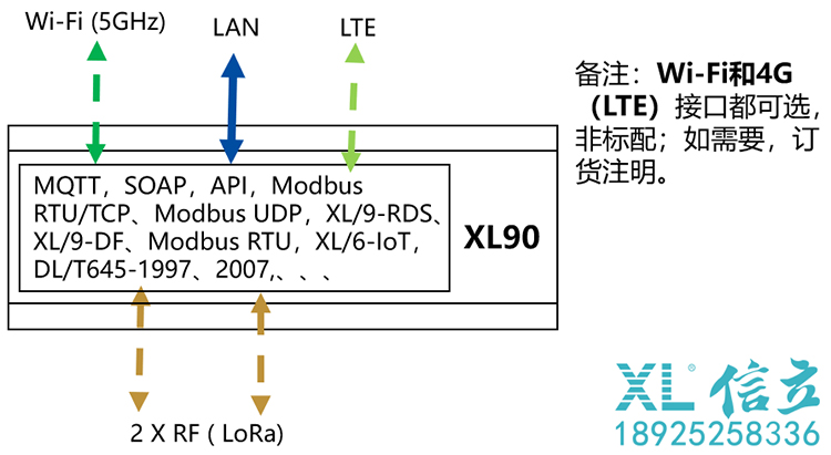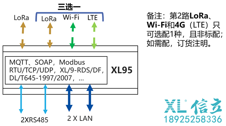 XL95标配一路LoRa通信;可多配一路LoRa,无线读取采集节点的数据;