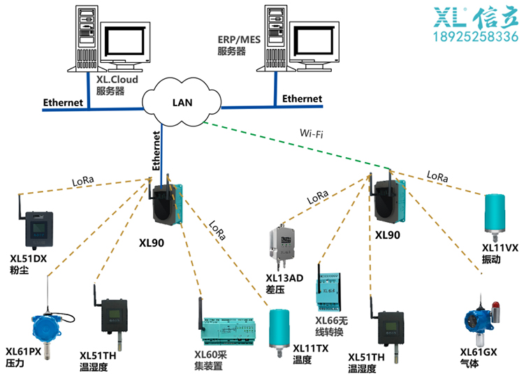 XL95可配置Wi-Fi,接入局域网,推送数据至服务器;
