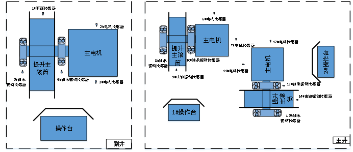 在主、副井提升机电机、减速箱本体上,按相关设备的技术要设置振动监测点;