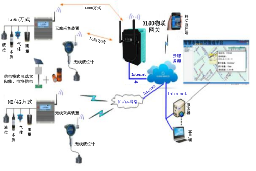 2、传输层:传输层主要有无线采集装置、NB、4G、Lora、433MHZ无线传输网络组成。