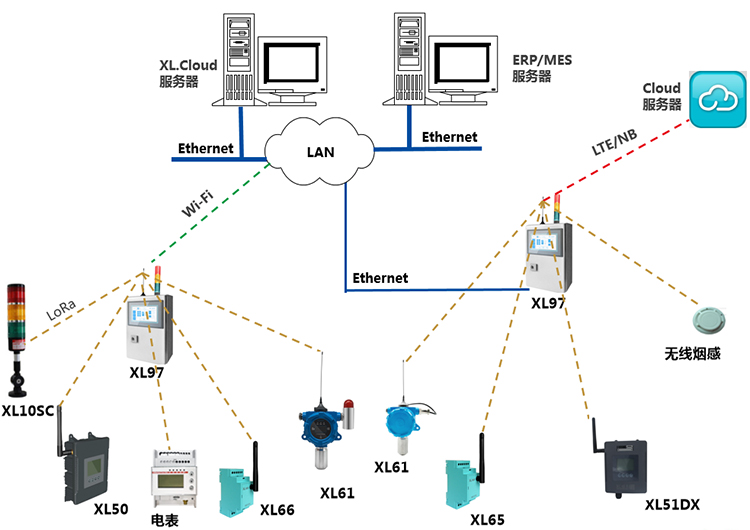 3、XL97终端支持Ethernet、Wi-Fi、4G等通信方式,向平台推送数据。