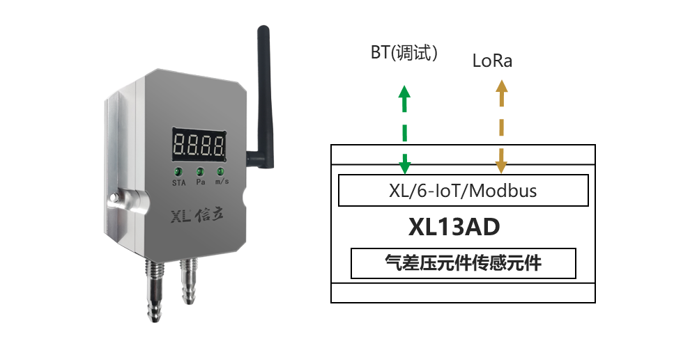 XL13AD无线风差压传感器,适用于室内外压差监测,排风管、空调管内外气压监测,支持LoRa上传。