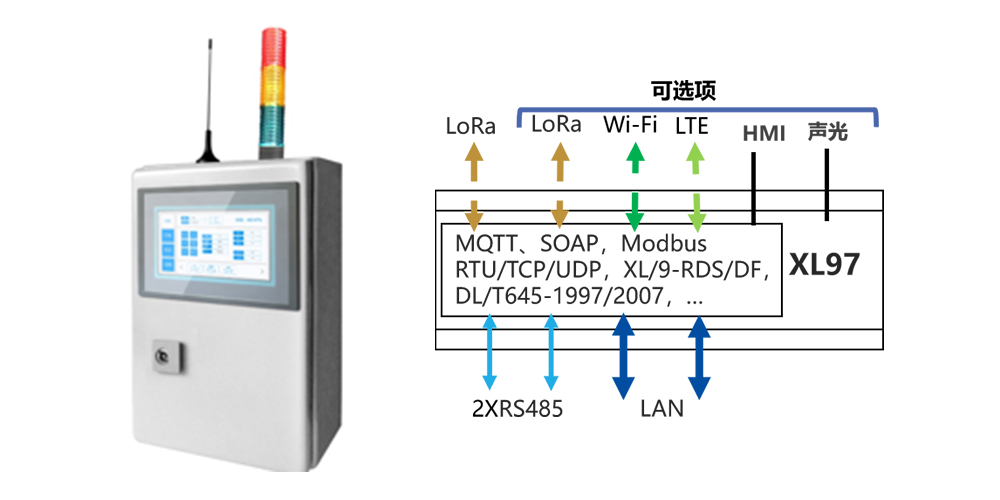 4. 可配两路LoRa无线通讯接口,无线读取传感、采集节点数据。
