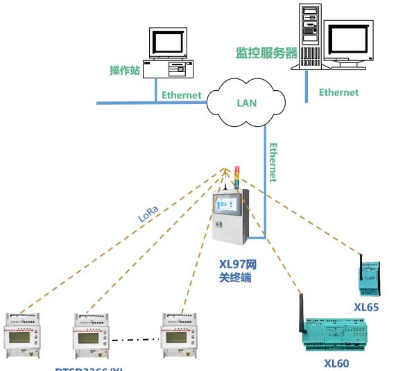 XL60无线上传数据至现场监控终端;或上传至XL90物联网关。