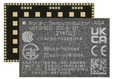 紧随高通,一年后,Nordic也向业界发布了其首款NB-IoT/LTE-M双模芯片和模组nRF91系列,并且成为继Altair、Sequans和高通公司之后第四家发布商用NB-IoT芯片的跨国公司。Nordic的nRF91系列是一款支持3GPP R13规范的LTE-M/NB-IoT双模芯片,其中的nRF9160 SiP是业内率先采用Arm®Cortex®M-33 CPU内核的NB-IoT模块,具有1MB闪存和256kB RAM板载内存。nRF9160 SiP还是首个将Arm当时最先进的Arm TrustZone和Arm CryptoCell安全功能融入互联网级加密和应用保护中。这些技术都是设计用于高能效,并且在运算能力、功耗和安全性方面要求超高性能水平的嵌入式IoT产品。nRF9160 SiP模块的尺寸仅为10 x 16 x 1mm,适用于非常紧凑的可穿戴消费产品和医疗设备,主要应用包括资产监控和跟踪、公用事业计量、工业和预测性维护、智慧城市和基础设施、智慧农业和医疗等。