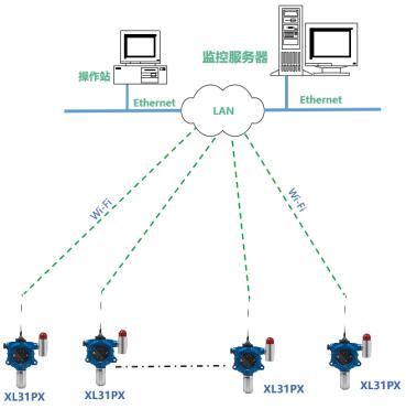 对于Wi-Fi覆盖的区域,如化工厂内的储罐等场景压力监测,可采用Wi-Fi传输方式,将数据通过LAN直接推送数据至监控服务器。