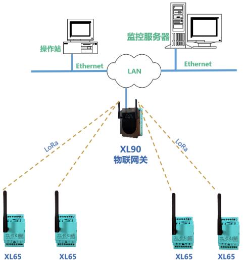 采用LoRa无线传输,需选XL90网关作为无线接收端,进行协议转换和数据转发。LoRa频段可按不同国家、地区规定供货。