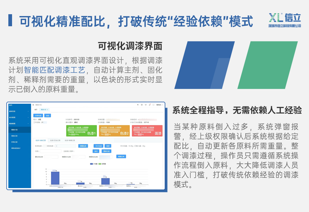 通博TBET科技涂装油漆调和监管系统,旨在通过数字化管理,将油漆调和作业过程标准化、去经验化,有效解决因依赖人工经验调漆导致的上述问题。