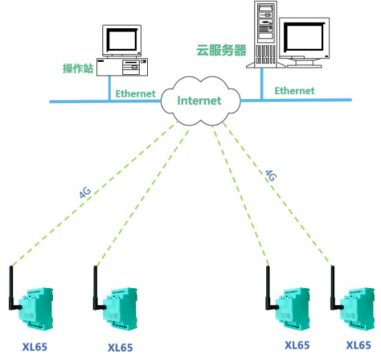 若距离偏远或设备较为离散,XL65无线采集器可采用4G通信方式,直接将数据接入云平台。