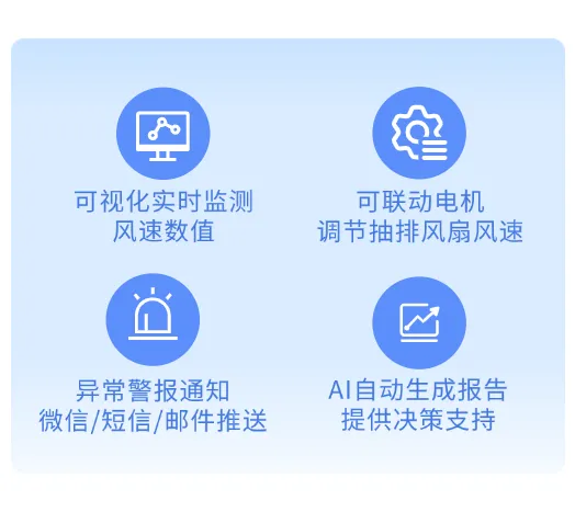 提高管理效率:远程实时监测,方便管理人员随时了解当前风速,并可远程联动控制电机,提升设备管理的灵活性和效率。