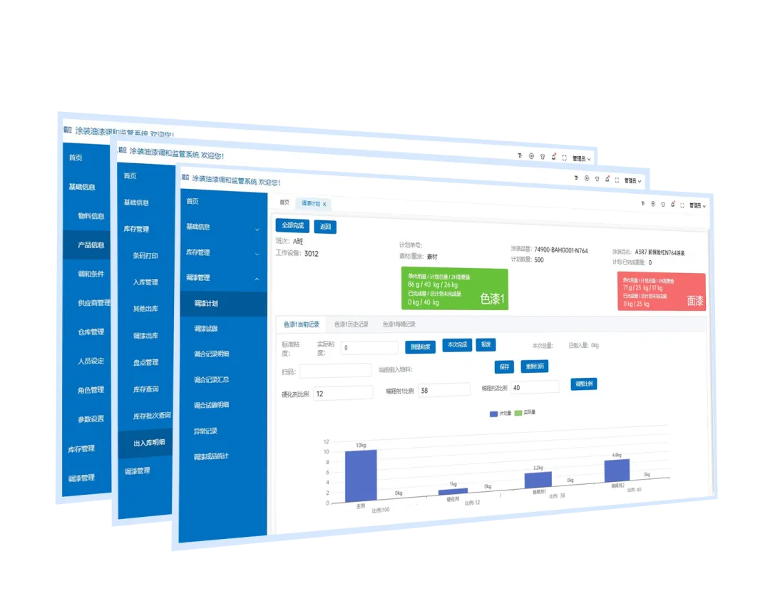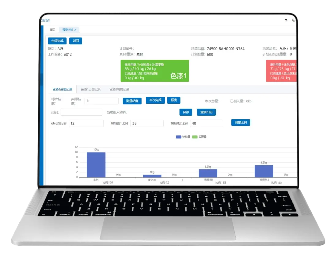 系统指导操作员按照标准工艺流程进行调和,实时监控调漆过程以防止错误操作。