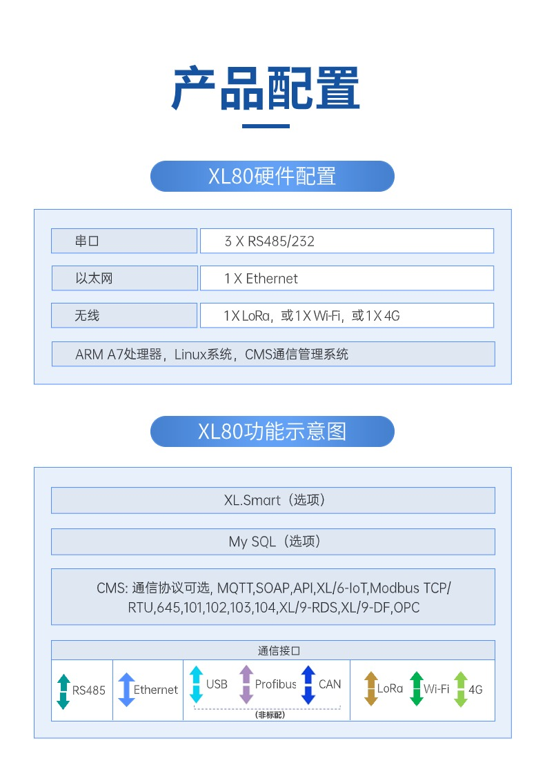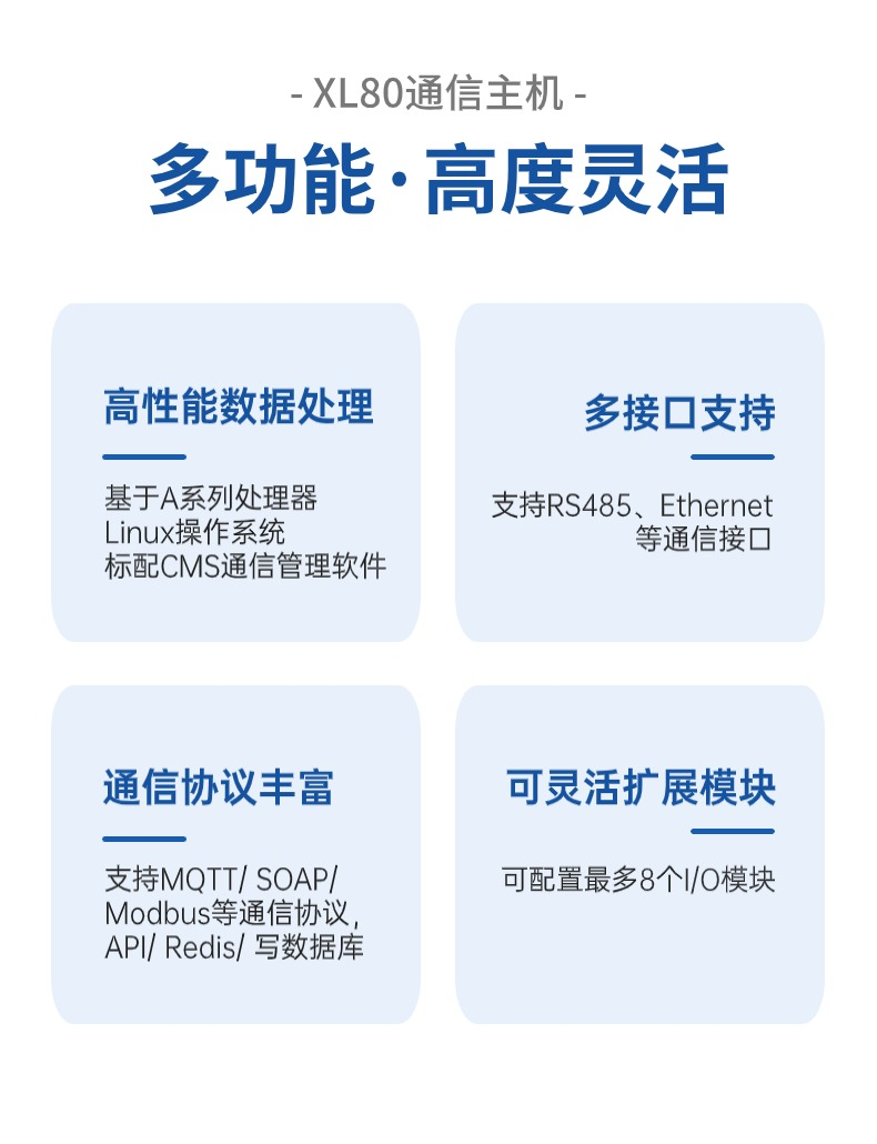 选择XL80通信主机,配备RS485/Ethernet等通信接口,可通过串口有线通信或LoRa无线通信读取工控设备数据,转发至企业MES或监控平台。