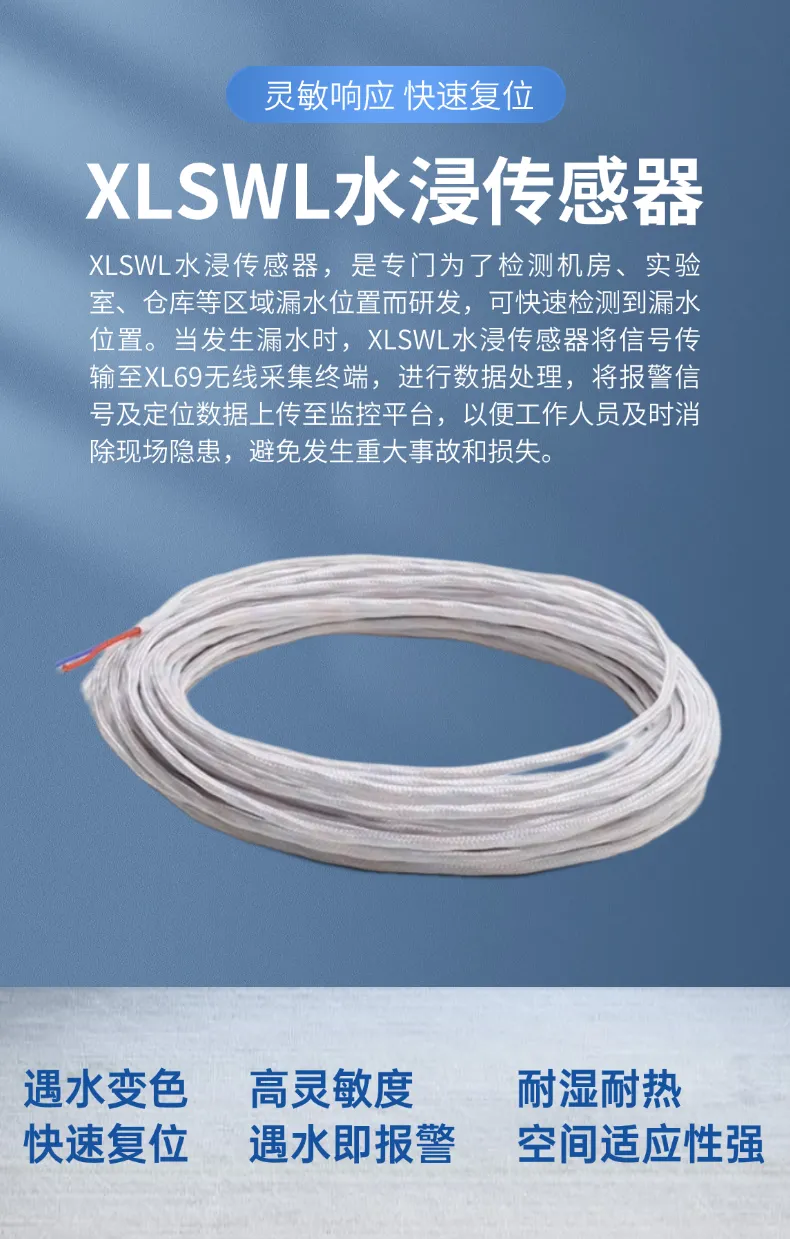 XLSWL水浸传感器根据现场实际情况,紧贴地面铺设,任何地方出现漏水,都能检测到信号,可快速自动复位或手动复位。